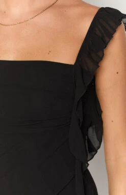 Step into effortless elegance with our Fortuna Black Maxi Dress! Featuring a sleek straight neckline and playful ruffle straps, this dress is perfect for any special occasion or formal evening. Pair with classic heels and a delicate necklace for a look that’s both chic and timeless!