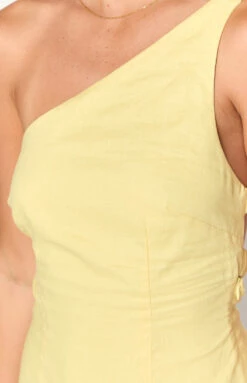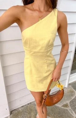 Brighten up your summer wardrobe with the Freida Yellow Mini Dress! With it’s one shoulder style and strappy back detailing, it is the perfect effortless piece for a sunny day! Complete the look with sandals and gold earrings. To elevate the outfit, swap for strappy heels and a chic mini bag!