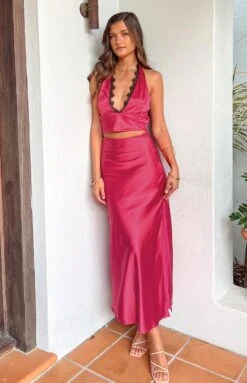 Pink Satin Maxi Skirt