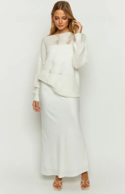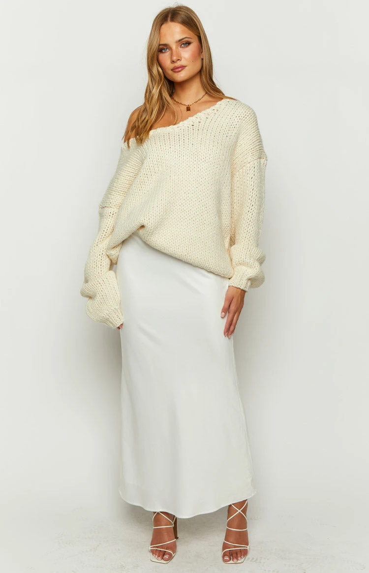 This white satin maxi skirt is the ultimate wardrobe basic! Featuring a flattering cut, the must-have maxi can be dressed up for down for any occasion! For a going out look, we love wearing ours with kitten heels, a chic satin crop top and chunky gold hoops!