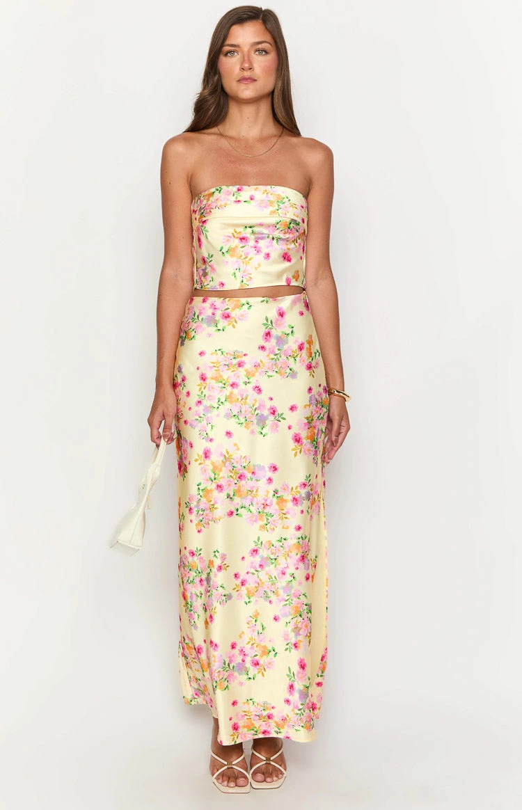 Our Genevieve Yellow Floral Satin Maxi Skirt is the perfect addition to your wardrobe for garden parties or daytime events! The high waisted, bias cut design with a side leg slit creates a flattering silhouette, while the lightweight satin fabric offers both comfort and style. Pair it with a basic cami or the matching Genevieve Yellow Bloom Top for a coordinated, effortlessly chic look!