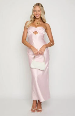 Baby Pink Satin Maxi Dress