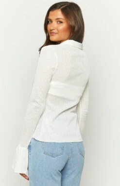 Harley White Sheer Button Up Long Sleeve Knit Top