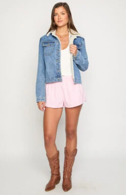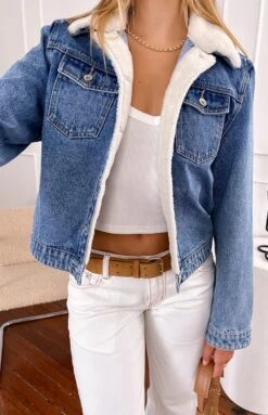Our Icelyn Mid Wash Sherpa Denim Jacket is the perfect cozy yet classic addition to your winter wardrobe! Featuring a charming shearling trim at the collar and inner placket, this jacket offers both warmth and style with its contrast stitching and collared neckline. Layer over a long sleeve top and jeans for an effortless winter look, or dress it up with a mini dress and boots for a stunning, cozy vibe!