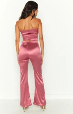- Fun and flirty in these high waisted pink flare pants. Style with the matching strapless top for a completed set look. Add a shoulder bag and heels and you’re set for a fun night out!