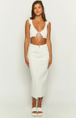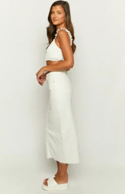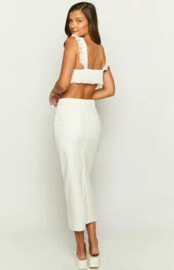 Isla White Denim Midi Skirt