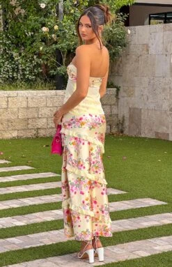 How to style: This yellow floral strapless top is the perfect addition to your summer wardrobe! Featuring a gorgeous yellow floral print, it is perfect for a summer day or sunset drinks! Keep it casual with a white mini skirt and nude sandals, or dress it up with a matching maxi skirt and strappy heels!Â