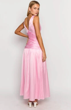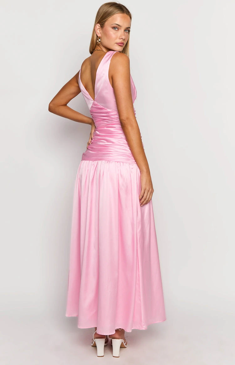 Pink Satin Maxi Dress