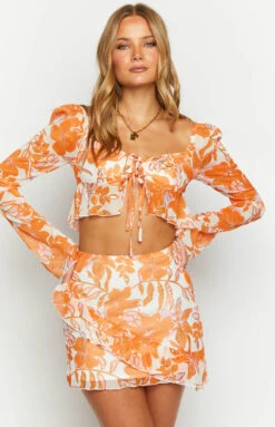 Orange Floral Long Sleeve Top