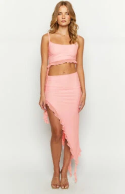 - Dress to impress in our pink ruffle crop top. Style this look with the matching skirt and heels for the perfect party outfit!