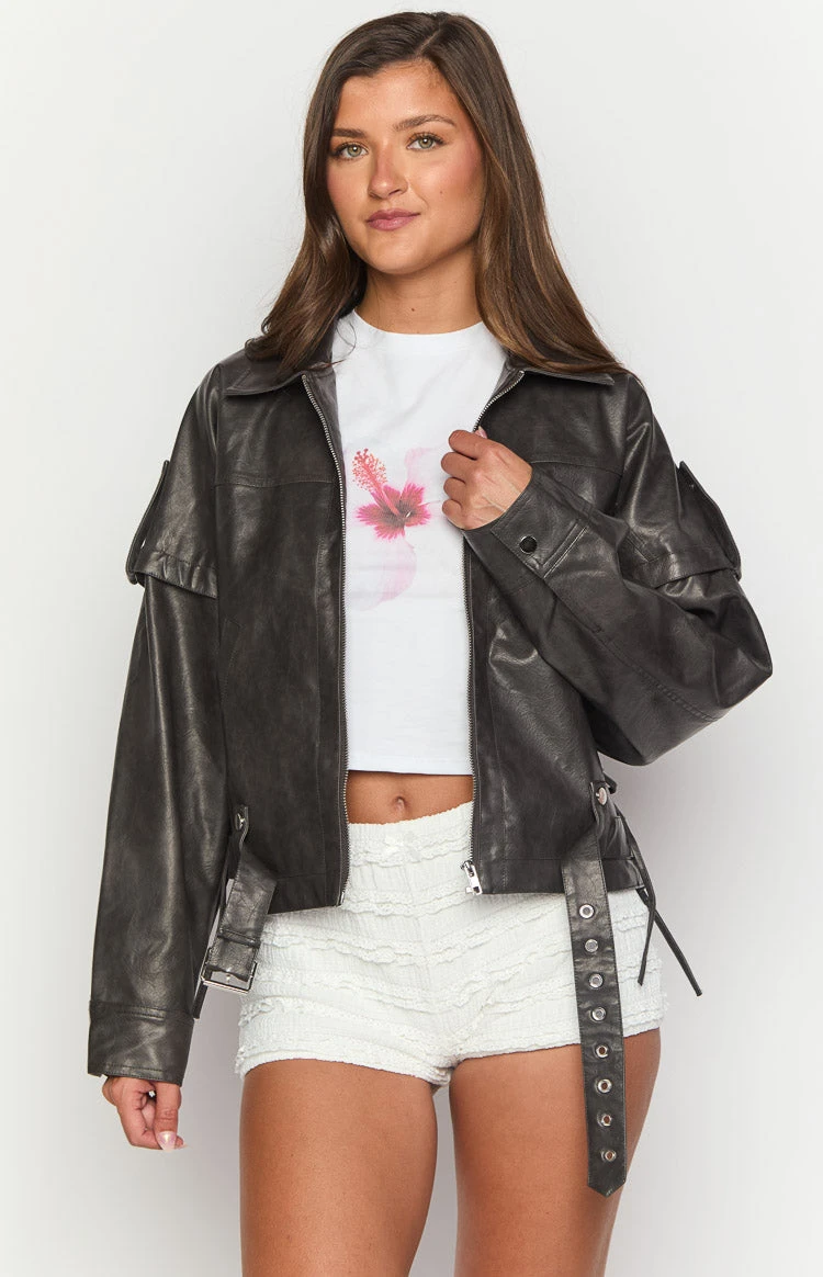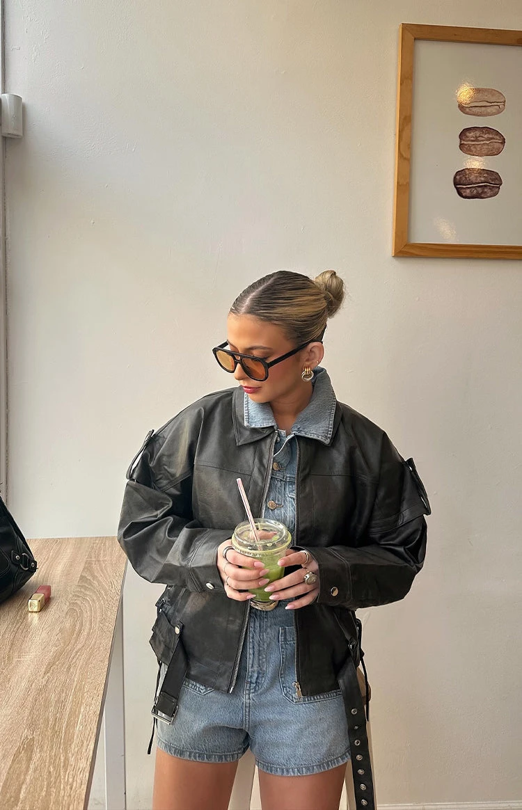 Take your outfit to the next level with our Jessica Anne jacket! Whether you’re layering it over a casual tee or a cute dress, the boxy fit and adjustable belt give it an effortlessly cool vibe. For a night out, style with a black mini dress and boots for an effortlessly stunning look!