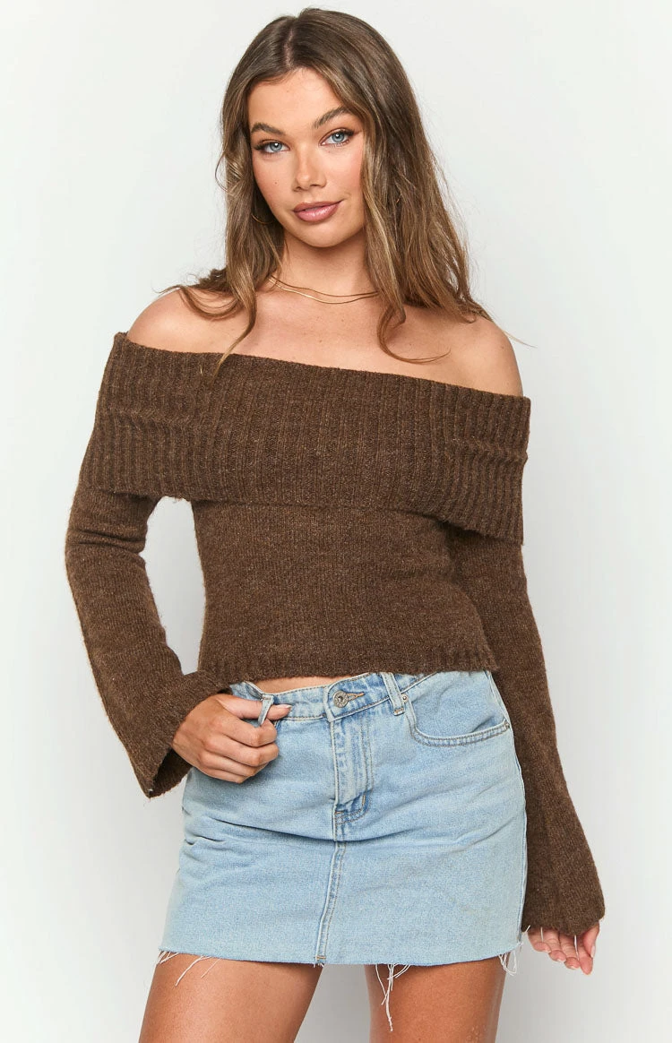 It’s cute, it’s cosy, and the Joey Brown Off Shoulder Sweater is bound to be a wardrobe fave! Dress it up with a mini skirt and some slingback heels for a fancy dinner or drinks with friends.