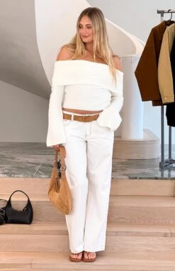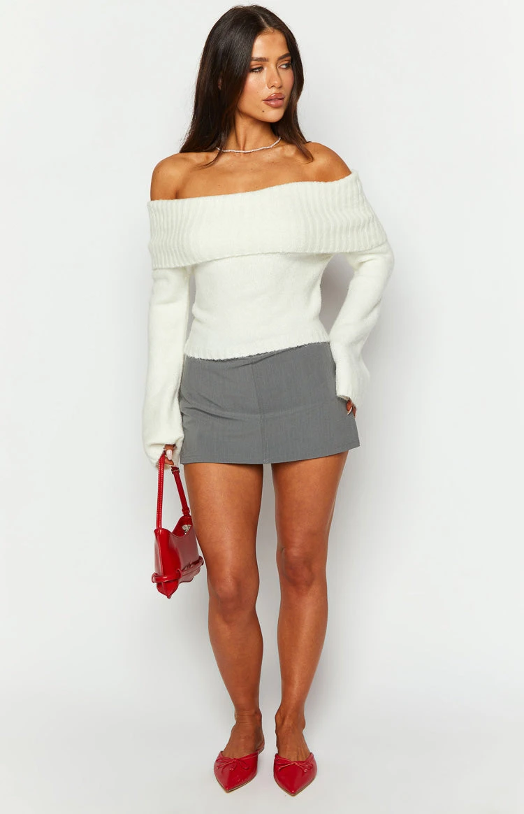 Off Shoulder Cream Sweater