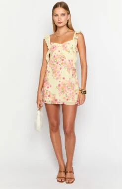 Bring a burst of sunshine to your wardrobe with our Joyce Yellow Bloom Mini Dress! Crafted from lightweight chiffon with a stunning floral print, it features playful ruffle detailing and a sweetheart neckline for a flirty finish. Style it with heels or sandals for a gorgeous look perfect for brunch, birthdays, or a summer day event!