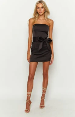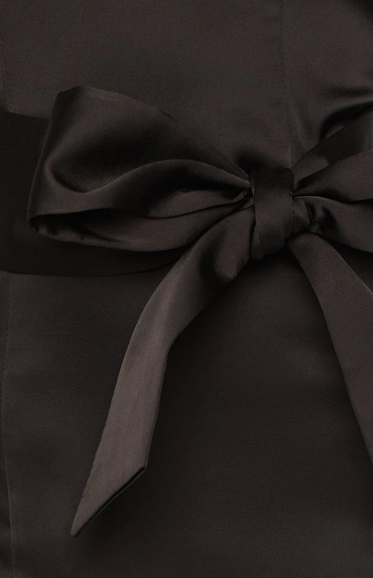 Kamie Black Satin Bow Mini Dress