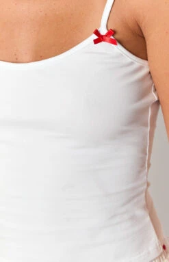 Slip into comfort with our Karey White Tank Top, featuring charming red bow details! This cosy yet stylish tank is the perfect versatile piece, whether you’re for lounging around or out and about! Embrace sweet dreams and effortless relaxation by pairing with some pj pants for a day of lounging.