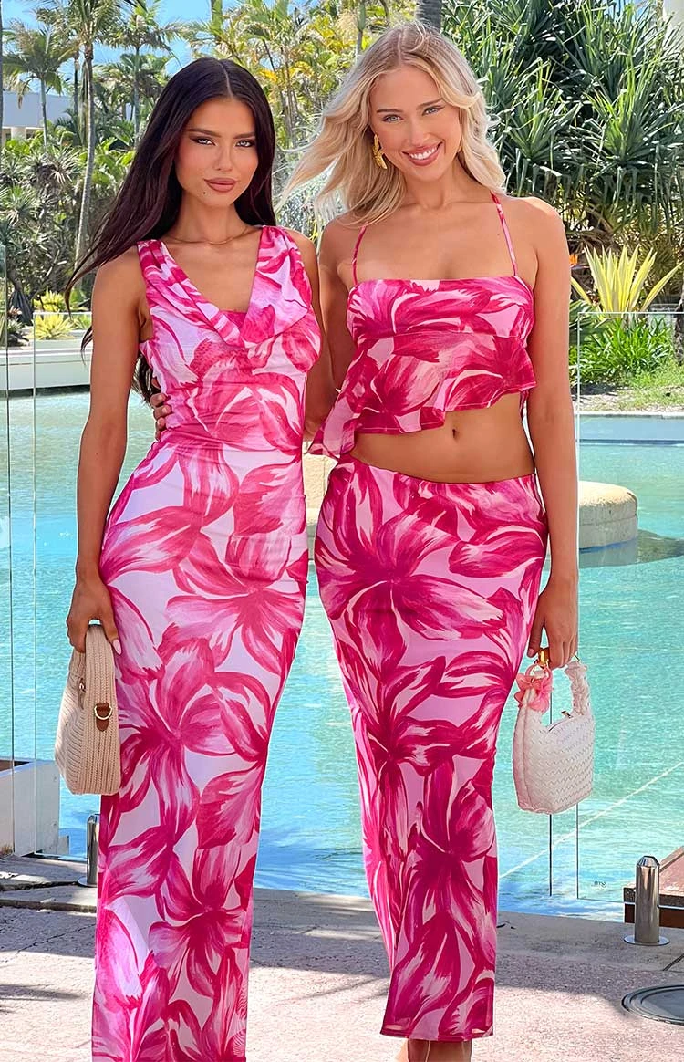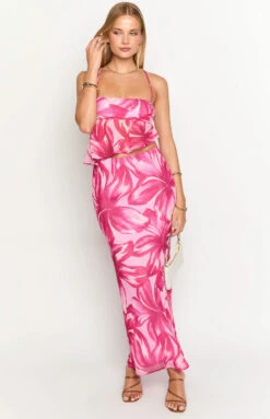 Dress with style with our Karla maxi skirt! The elasticated waistband and bias cut create a flattering, effortless fit, while the chiffon outer adds a soft, dreamy feel. Tie this look together with our matching Karla top and sandals for a breezy, chic look perfect for sunny days or evening events!