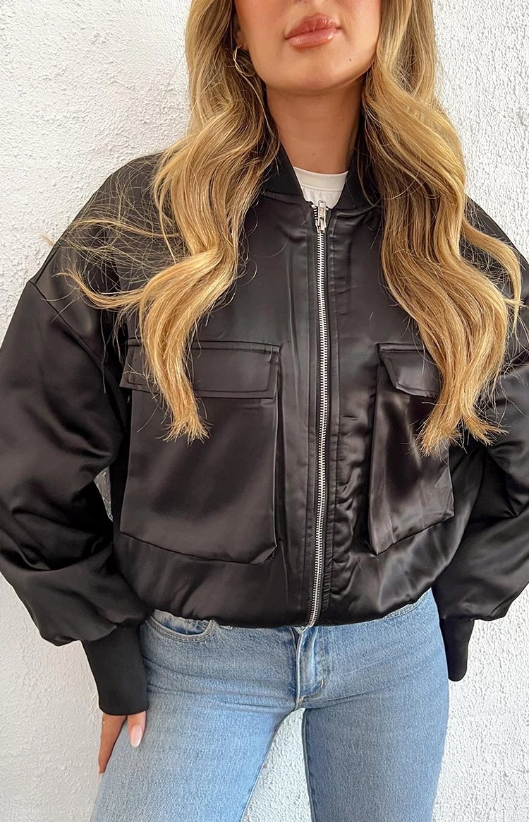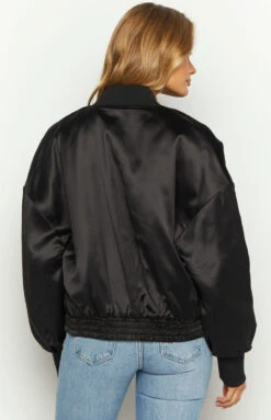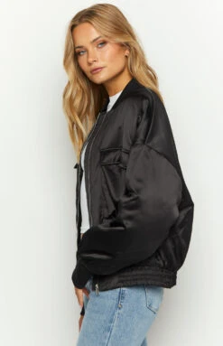 - Black Satin Bomber Jacket