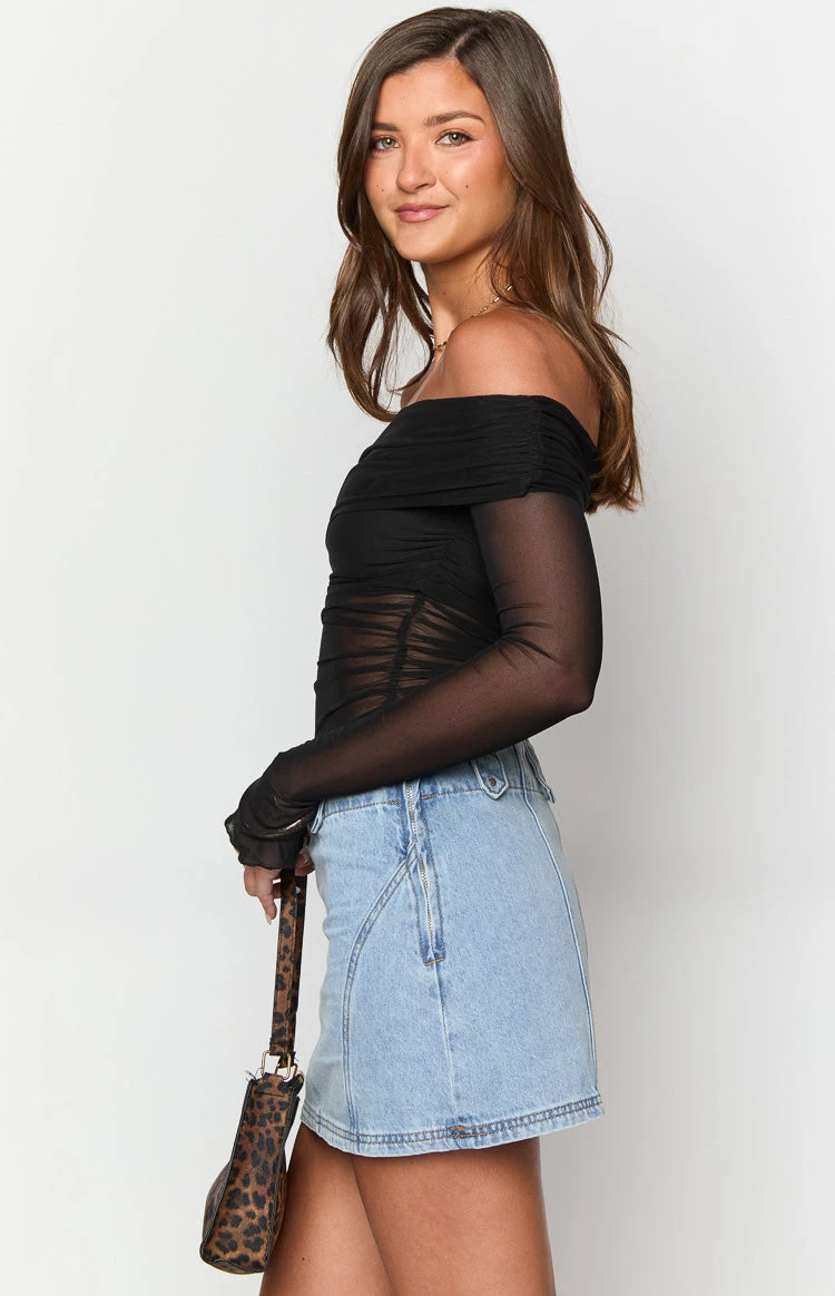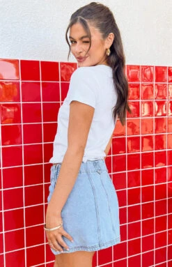 Embrace a casual chic look with our light wash denim mini skirt. Perfect for a casual day out, style it with a tucked-in blouse and ankle boots for a relaxed yet chic look.