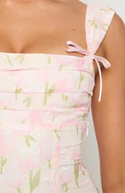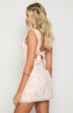 Our Layla Pink Floral Tie Back Mini Dress is the perfect sweet and playful choice for brunch dates or day events! Crafted from delicate chiffon with tuck detailing on the bust, this mini features removable ribbon bows and a self-tie back for a charming, adjustable fit. Style with delicate jewellery and heels for an effortlessly romantic look!