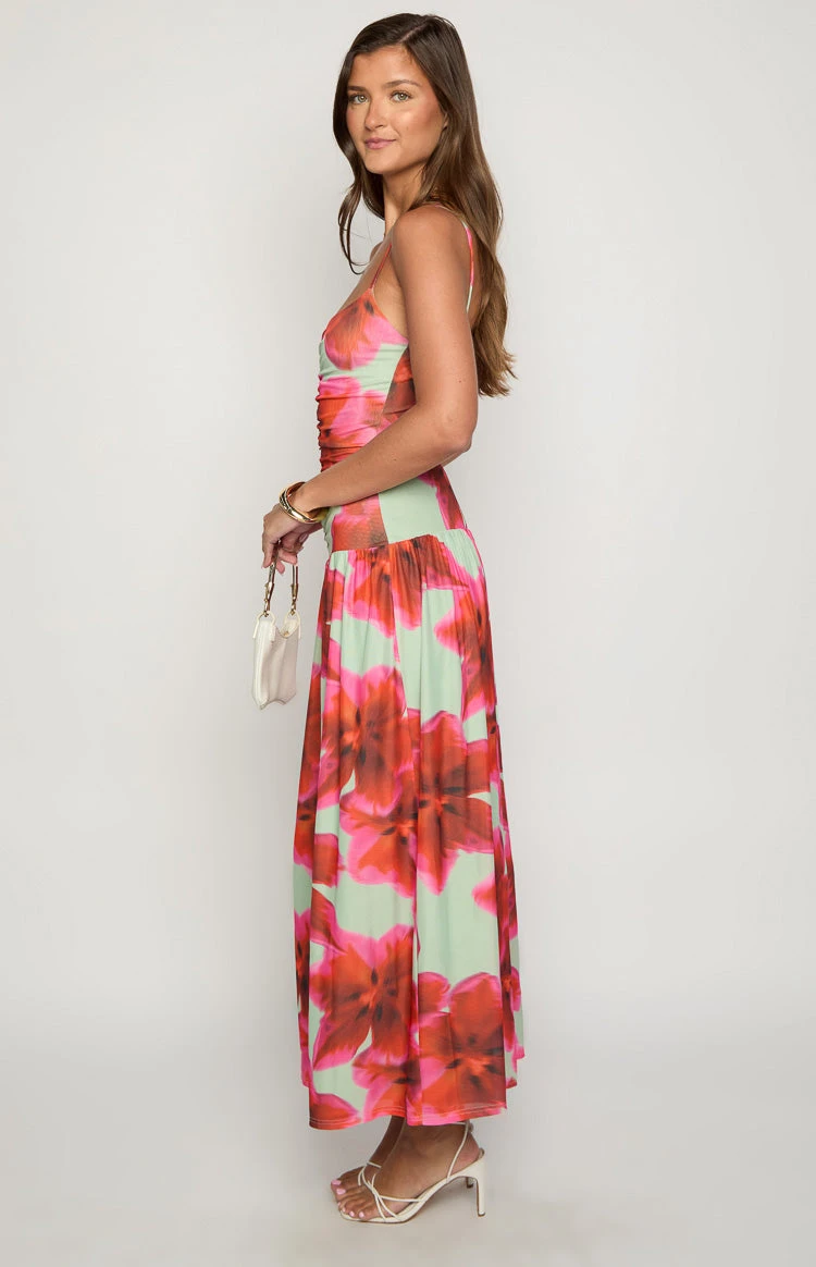 Green Floral Print Maxi Dress