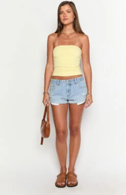 The Lindsay Light Wash Denim Shorts are the perfect combination of laid-back and cool. Featuring a low rise fit with distressed accents and oversized front pocket linings, these shorts bring a cool, worn-in vibe to your wardrobe. Pair with a graphic tee, cowboy boots and gold accessories for your next weekend adventure!