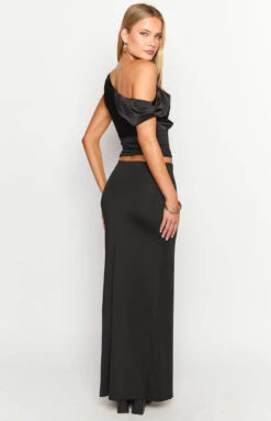 Pair this versatile black maxi skirt with the matching Linkin Off The Shoulder Crop Top for a chic monochromatic look. Complete the outfit with strappy heels and statement earrings for an elevated evening ensemble, a perfect chic choice for graduation.