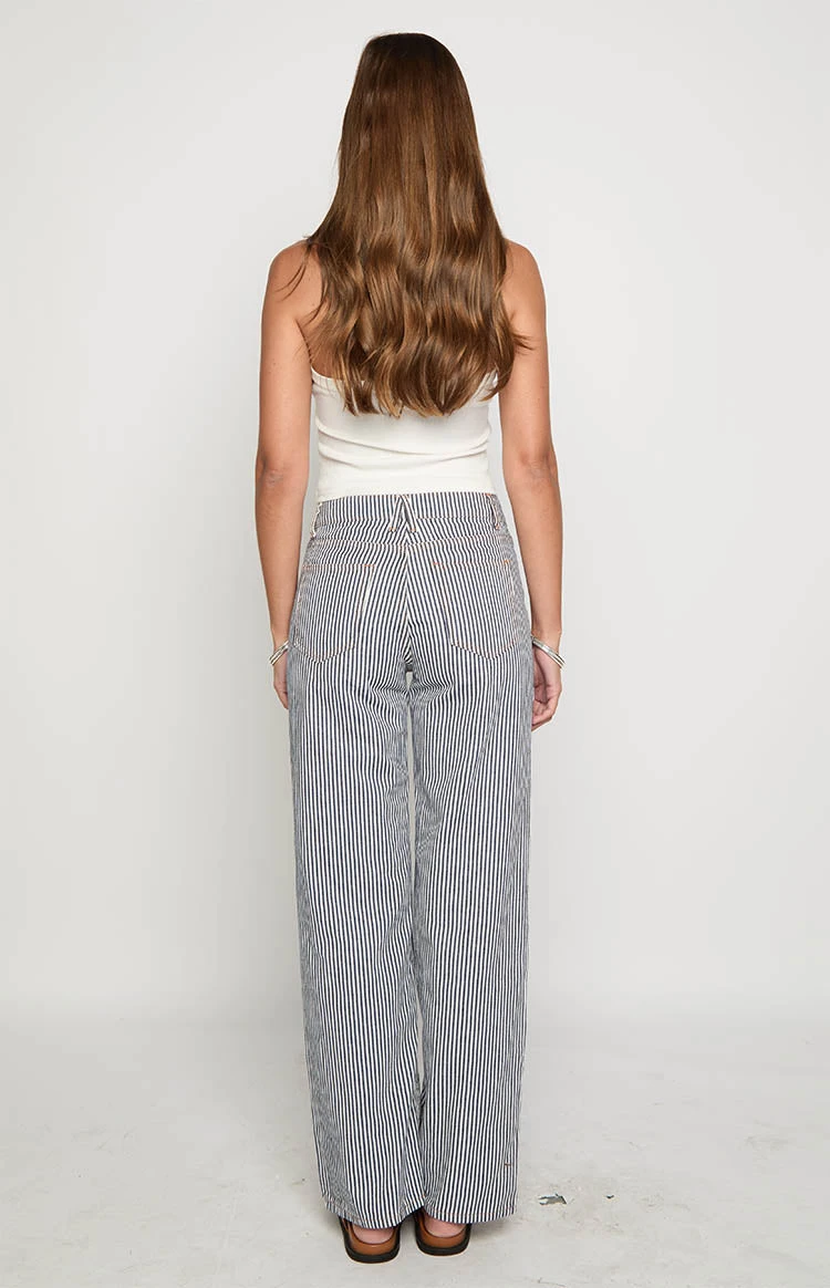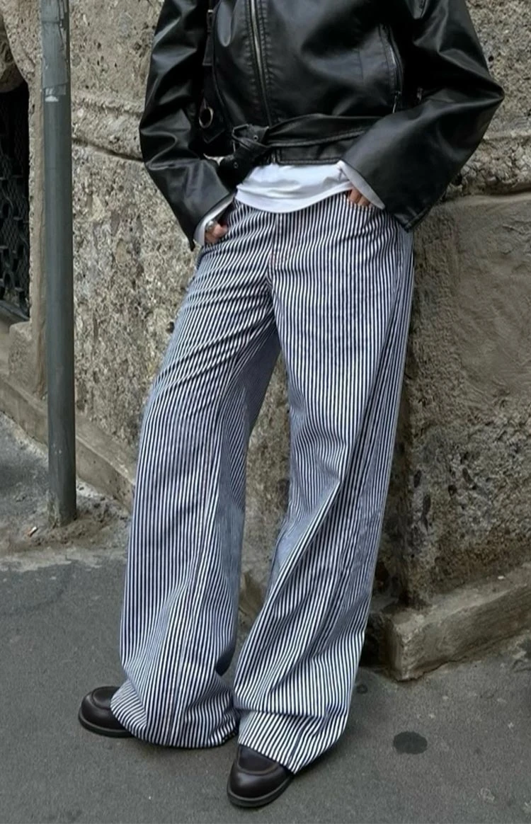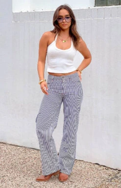The Top Model Navy Stripe Jean by Lioness is a versatile wardrobe essential! With a low-rise baggy fit and contrast stitching, these jeans offer a chic yet relaxed look that’s perfect for a night out or a stylish business day. Pair them with a fitted top and heels for a polished look, or dress them down with sneakers for a more casual vibe!