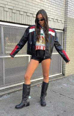 - This biker jacket by Lioness is the ultimate addition to your winter wardrobe. Finish this street style look with a pair of sunglasses and boots, perfect for your next night out on the town!