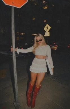 White Knit Ruffle Shorts