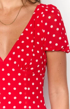 Turn up the charm with the Lovella Red Polka Dot Maxi Dress! The short puff sleeves add a flirty touch, while the flowy maxi length keeps it effortlessly elegant. Perfect for Christmas day, summer weddings, or date nights, this dress is as versatile as it is stunning. Pair it with white sneakers for a casual look or strappy heels and gold jewellery to elevate your look!
