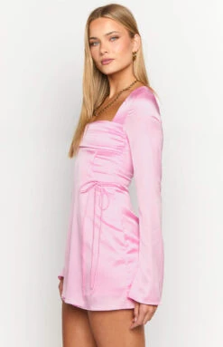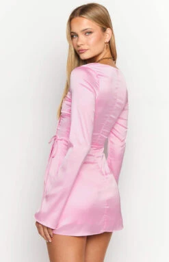 How to style: Our Lucy Pink Satin Mini is the perfect blend of elegance and playfulness! Made in a luxe satin material and a cut in a classic silhouette, this long sleeved mini brings an air of effortless sophistication to any event. Style with strappy heels and a shoulder bag for date night, tying the look together with your favourite jewellery!