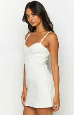 Whether it’s a picnic in the park, Sunday sesh, or a night out with the girls, this super sweet white mini is a summer staple! Featuring flower details on the straps and a sweetheart neckline, we love wearing ours with dainty gold jewellery and strappy heels.Â