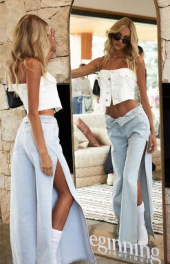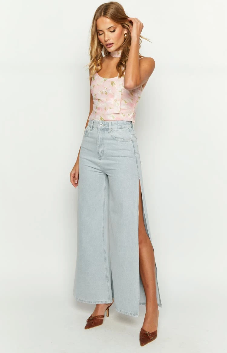 - Our side split jeans will become your new favourite pair of pants. Pair with a crop top and heels for an easy and effortless look, perfect for a girls night out!