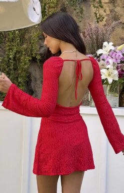 Red Lace Long Sleeve Mini Dress
