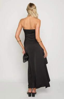 Our Merlo Black Strapless Formal Maxi Dress combines striking elegance with a modern edge! The high thigh split with a ruffle detail adds movement and drama, while the fold-over panel on the bust and asymmetrical side split create a unique, flattering silhouette. The perfect black dress for formal events, pair it with heels and statement earrings for an unforgettable evening look!