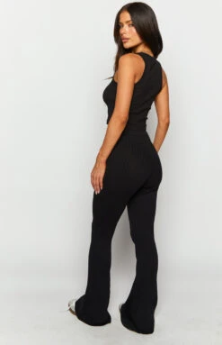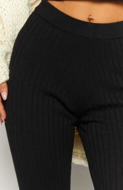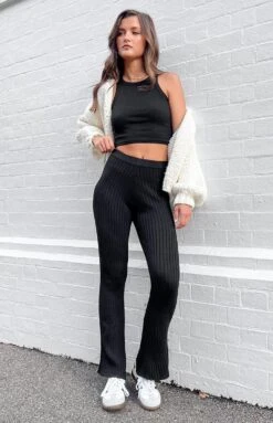 Hit the town in these ultra comfy black knit flare pants. Featuring a high waisted design it makes the perfect bottoms to wear with a black crop top and sneakers. Add sunglasses and a jacket for a trans seasonal outfit.Â
