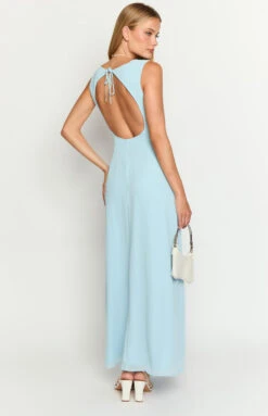 Make a statement at your next formal or cocktail event with our stunning Misty Light Blue Chiffon Maxi Dress! Featuring a flattering cut and an open back design, this dress is the perfect blend of elegance and allure. Complete your look with white heels and jewellery in your favourite metal for an effortlessly chic finish.