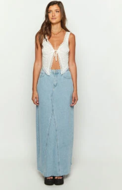 Our denim maxi skirt can be dressed up or down with ease, making it perfect for any occasion! Pair with a corset and heels for an elevated night time look. Alternatively, chuck on sneakers and a graphic tee for that effortless day-to-day cool girl look.