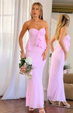 Embrace your inner Barbie in our Myrna Pink Strapless Top! This style exudes femininity with its twist bust detailing, layered waist panels and strapless style! Pair with the matching Myra Pink Maxi Skirt to complete your next summer party look or dress it down with a denim skirt for a day at the beach!