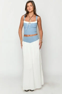 Elevate your look in our Mystic white maxi skirt! This piece is a fun spin on a classic white skirt giving it a unique flare. Perfect for brunch with the girls or a day at the markets – pair with boots and a simple white top to complete the look.