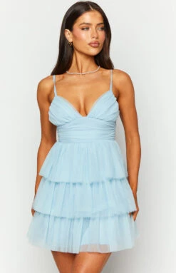 This stunning blue tulle mini dress is the perfect addition to your summer collection. Dress it up with heels or down with sneakers to achieve the ultimate look. Wear this to a lunch with the girls or a cocktail event.