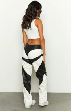 - Black and White PU Pants