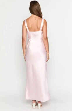 Pink Satin and Lace Maxi Dress