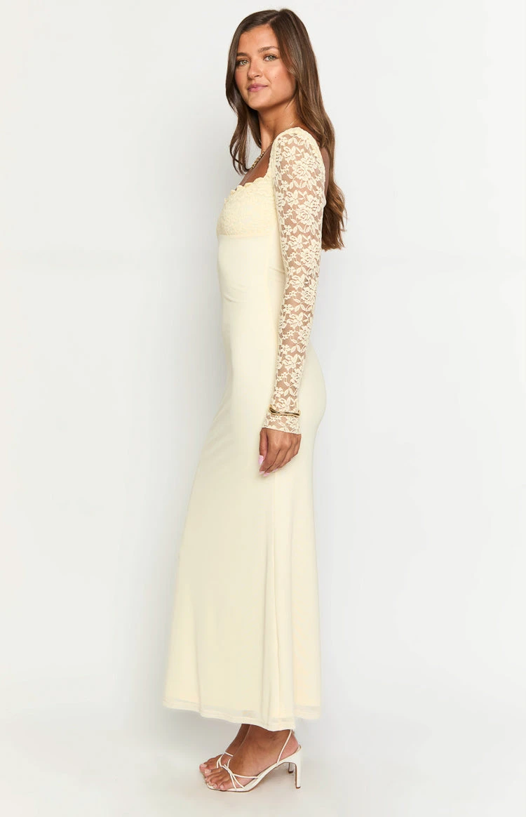 Embrace minimalist luxury in our Orlando Cream Maxi Dress! The stretch lace fabric on the sleeves and bust and long sleeves are effortlessly elegant. With a pair of heels and your go-to gold jewellery for a gorgeous formal look!