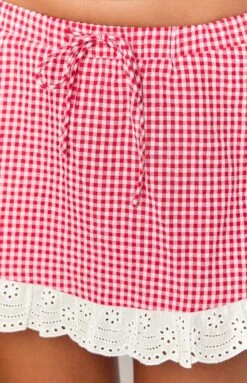 Our Red Gingham Mini Skirt is the ideal choice for your summer day plans! The lace detail hem and tie waist design add a charming touch, while the low-rise, mini length keeps it playful and chic. Pair with a simple tank or tube top, sandals, and dainty gold jewellery for an effortlessly stylish look!