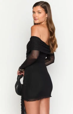 You always need a little black dress in your wardrobe, and our Paige Black Off Shoulder Mini Dress is just that! This effortlessly stylish and super soft mini pairs perfectly with black heels and gold jewellery. Finish your look with a coloured shoulder bag to add a pop of colour on your next date night!