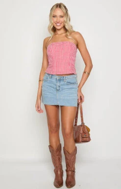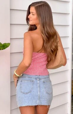 Red Gingham Strapless Tube Top