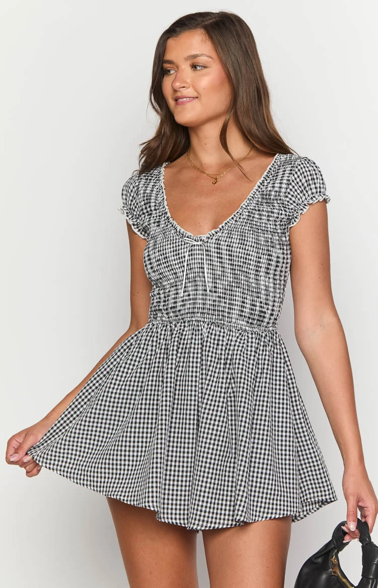 Radiate sweet vibes in our Raldo Black Gingham Playsuit! Featuring short puff sleeves and an adorable bow detail at the bust, this playsuit is an effortlessly stylish pick to add to your fit rotation. Style with sandals and your favourite jewellery for the summer, or pair with a faux leather jacket and black boots for the colder months!