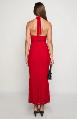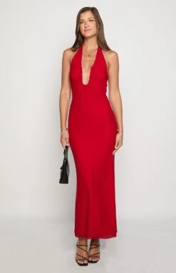 Turn heads in our Raymin Red Maxi! This stunning dress features a halter neck tie, wire plunge neckline, and a gorgeous vibrant red fabric. Dress it up with heels and striking gold jewellery, and you’ll be ready to shine at your next formal event.